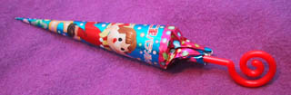 綺麗なパラソル・チョコのラッピング。(丸の内) 下は、本物のパラソルチョコ。