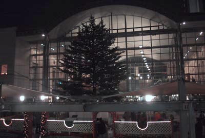 2002年12月1日。お台場のホテル・メリディアン・パシフィックで クリスマスツリーの点灯式が行われた。上は、お昼のツリー。 |