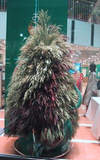 和風トリオ。わらぶき屋根風、イネ風(お米のギャラリーだから)、和菓子やの箱ツリー。 |