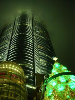 2003年11月30日、六本木ヒルズ。MISIAのツリーから森タワーを 見上げると、すごい霧がかかっていて、なかなか幻想的。